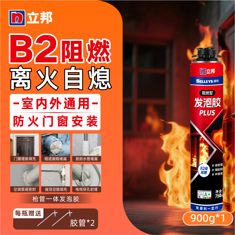 立邦B2阻燃级发泡胶离火自熄高硬度抗形变门窗孔洞填充耐水环保泡沫剂 【B2级阻燃】防火型发泡胶900g