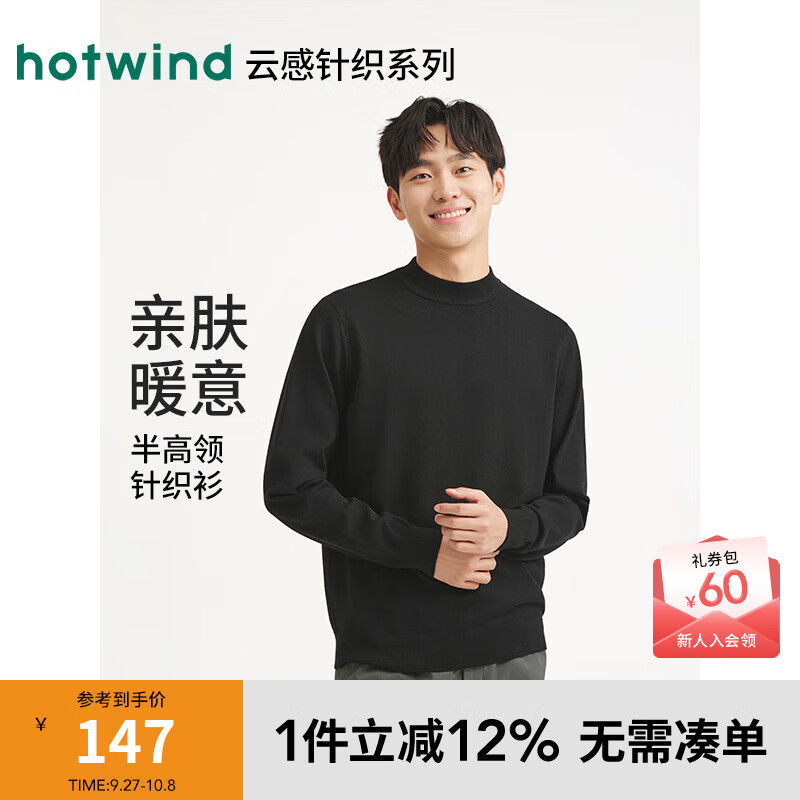 热风男士针织衫内搭上衣2025年冬季新款基础半高领针织衫百搭毛衣 01黑色 S