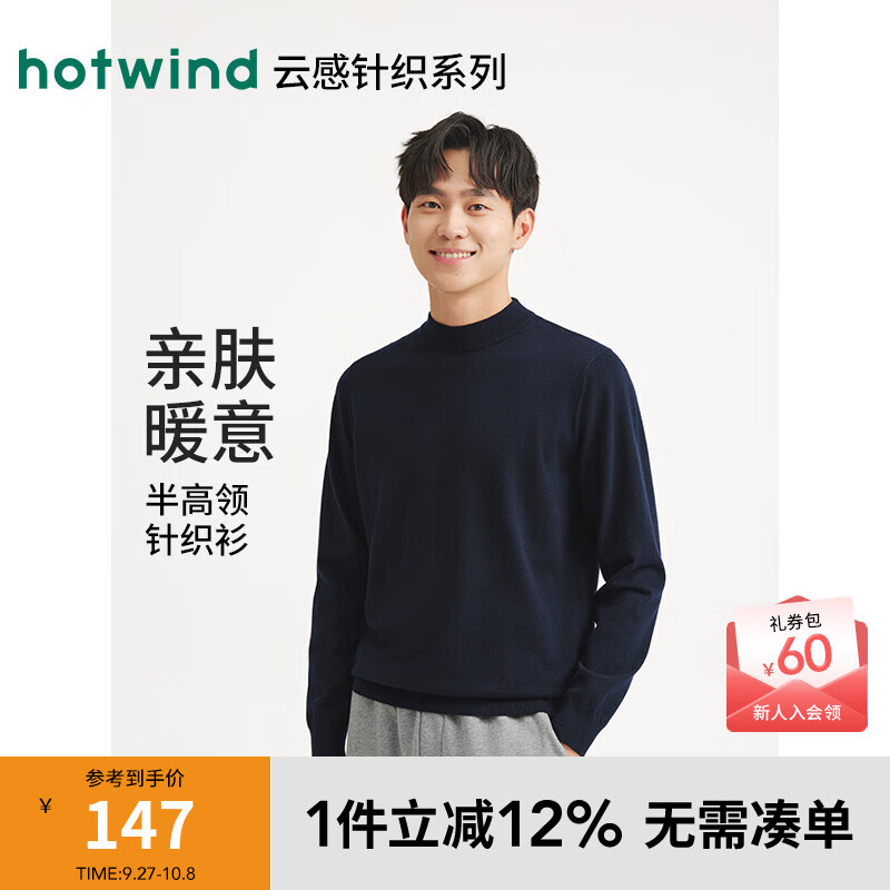 热风男士针织衫内搭上衣2025年冬季新款基础半高领针织衫百搭毛衣 29藏青兰 S