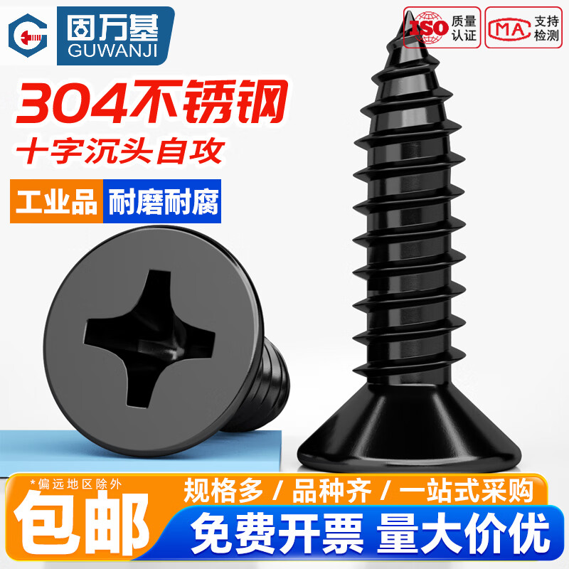 固万基黑色304不锈钢自攻螺丝十字平头螺丝钉YB846加长沉头自攻丝木螺钉 M2x5[200粒]