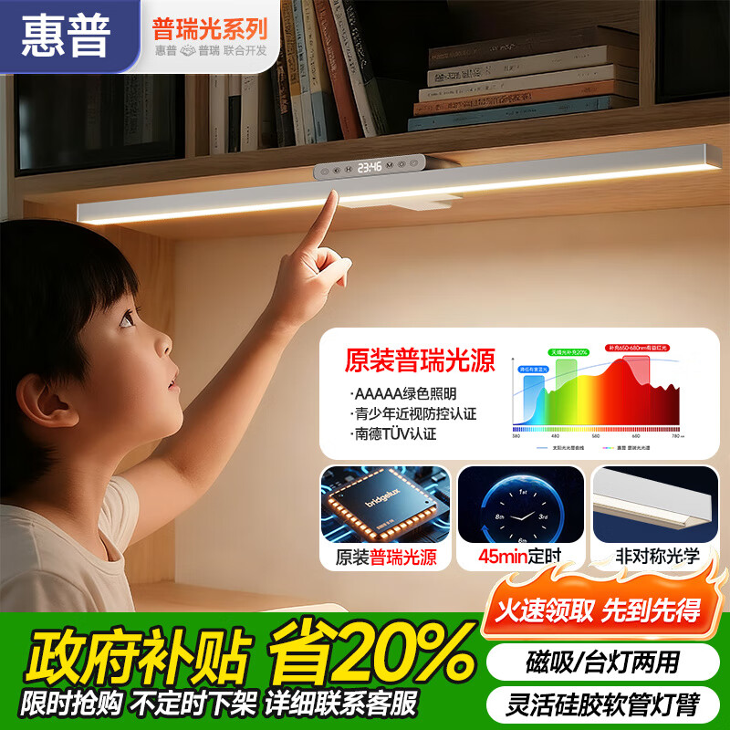 惠普酷毙灯护眼台灯学习专用大学生宿舍书桌磁吸床上阅读灯寝室书桌灯 60CM-普瑞光源-触控调光调色-定时提醒