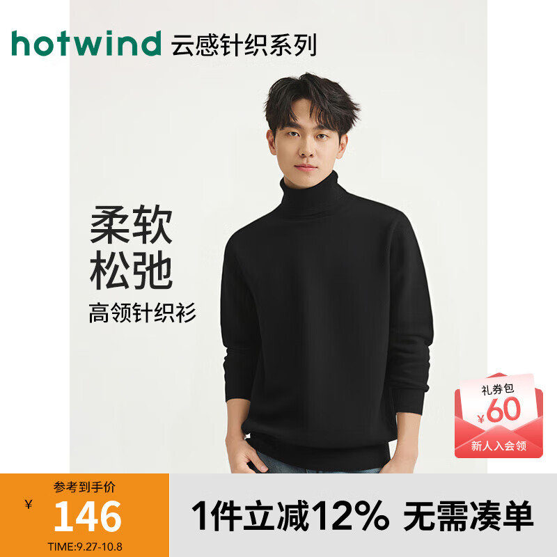 热风男士高领毛衣2025年冬季新款基础高领针织衫宽松韩系内搭上衣 01黑色 S