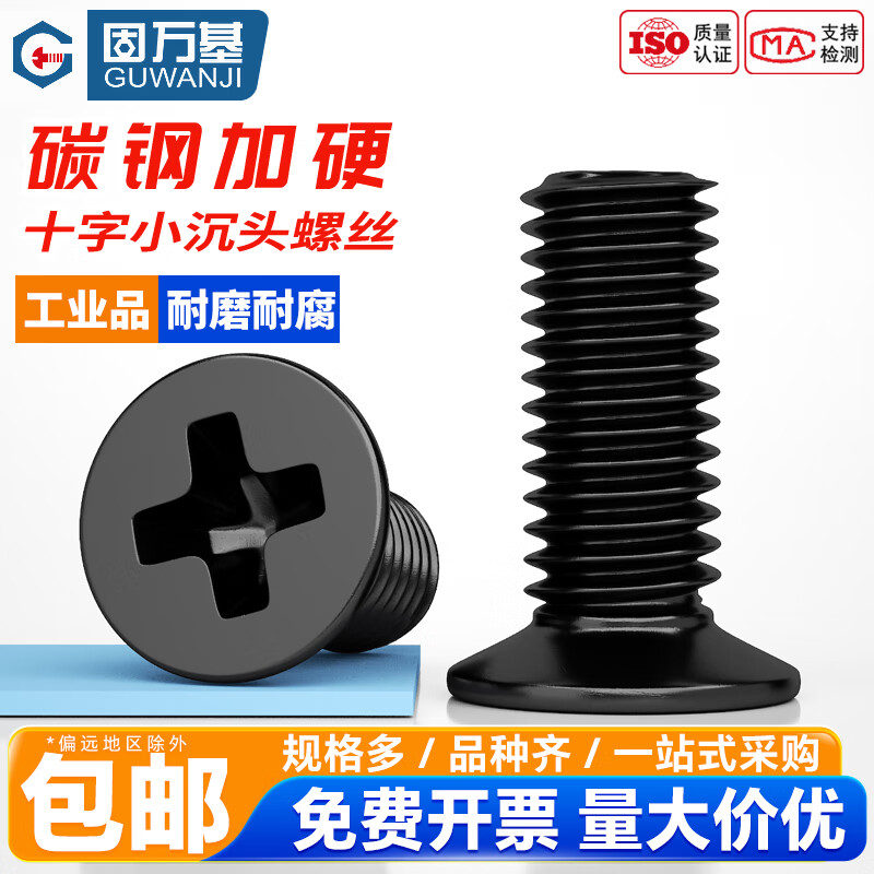 固万基铁黑十字小沉头螺丝钉FM小平头机丝螺钉薄头螺栓螺杆M2-M4 M4*16 头5.0[200个]