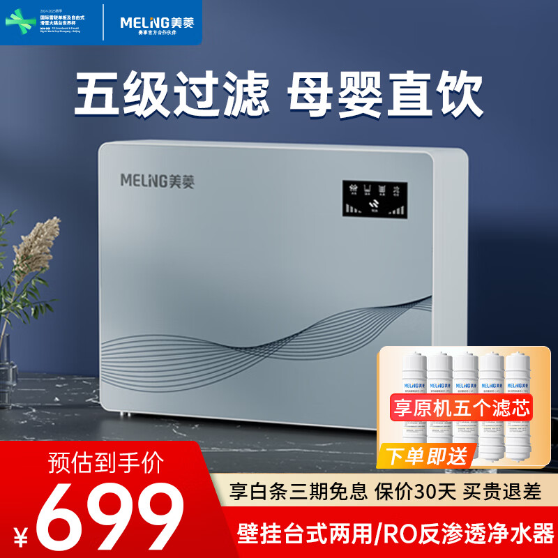 美菱(MeiLing)净水器家用直饮机RO反渗透净水器直饮机厨下式自来水过滤器 【五级过滤|1000G大通量】上门安装