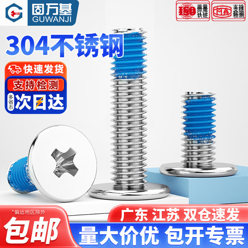 固万基304不锈钢薄头扁平头十字螺栓CM点胶防松动胶涂蓝胶螺丝钉M2M3-M8 M2x3x4(200只)