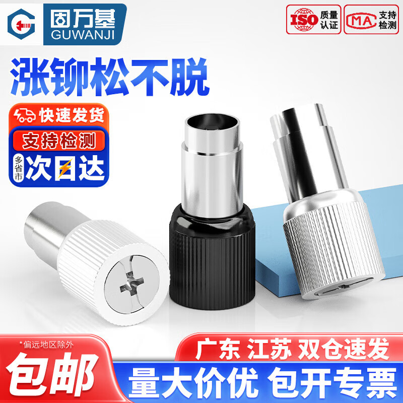 GUWANJI涨铆松不脱螺钉钣金压板弹簧螺丝防松不脱落面板铆钉PF09-M2.5/M3 银色 PF09-M2.5-0 钉长14.5 板厚≥1.2[10只]