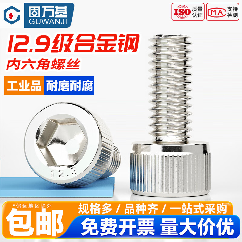 GUWANJI12.9级镀镍内六角螺丝钉圆柱头高强度DIN912杯头螺栓螺钉M1.6-M20 M3x30[50粒]