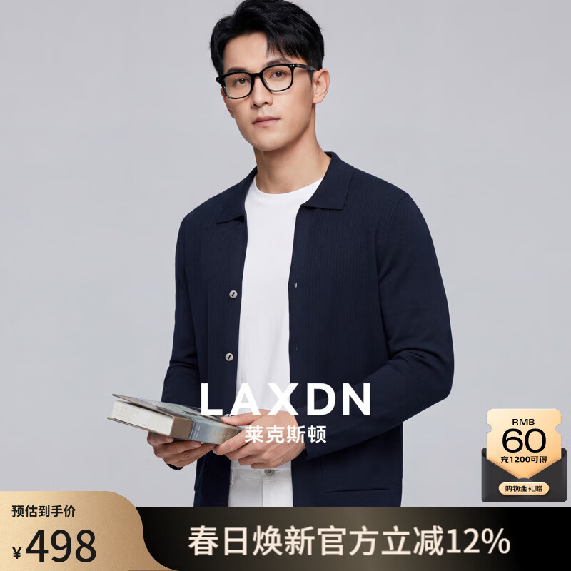 莱克斯顿外套夹克男春秋针织面料耐磨抗起球翻领商务休闲舒适保暖外套男 藏青色 XL