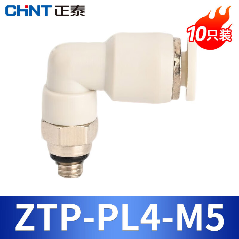 正泰(CHNT)气动快速接头 气管弯头 PL8-02外螺纹弯头快速接头 二通90度弯头 ZTP-PL4-M5(10只装)