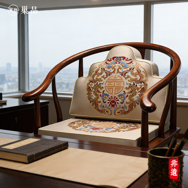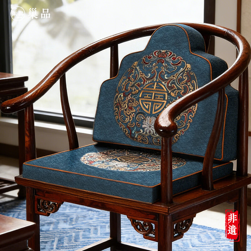 大唐梦中式红木椅子坐垫带靠背办公座椅垫子靠山靠枕实木茶椅垫圈椅靠垫 吉祥 高精密 烟灰【刺绣/防滑/防水】 更多款式支持定制【海绵/椰棕/乳胶内芯】