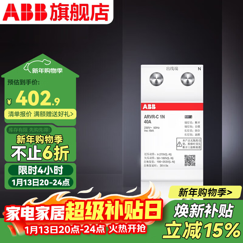 ABB断路器 新一代CR系列3P空开带漏电保护器6000安高分断 AC型 3P 10A带漏保