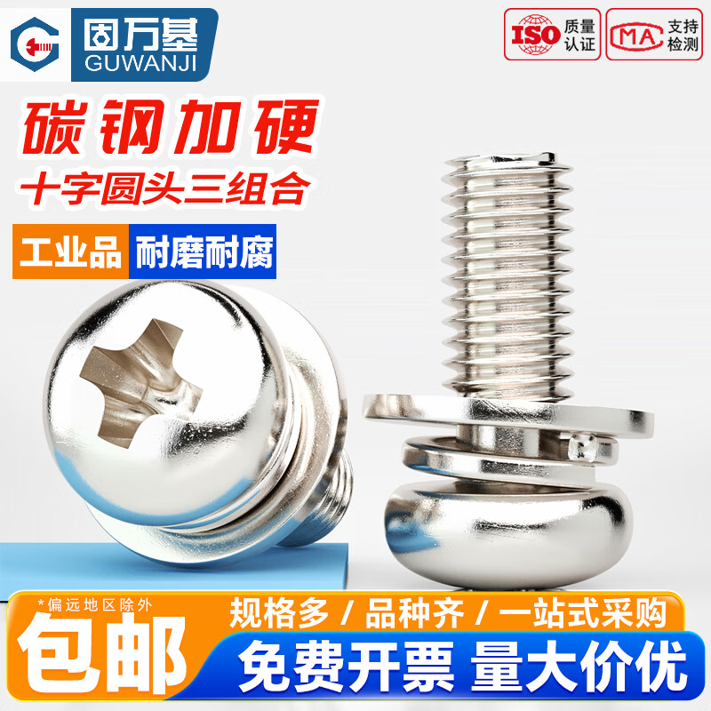 固万基镀镍圆头十字三组合螺丝钉GB9074.8盘头带垫组合螺钉螺栓M1.6-M8 M1.6*4*3.5[200套]