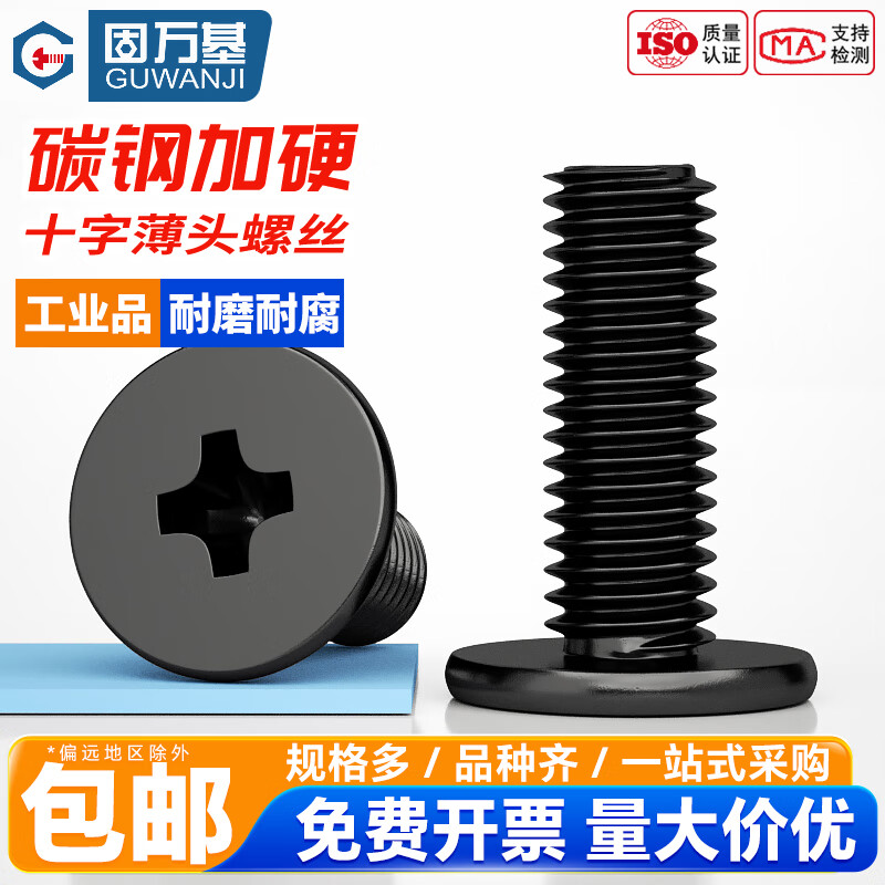 固万基CM碳钢铁黑色扁平头十字螺钉超薄头大平头螺丝钉电脑螺栓 M1.2x2[1000粒]