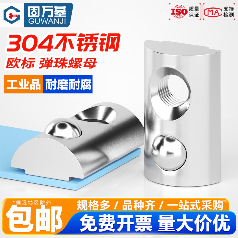 固万基304不锈钢弹片螺母钢珠欧标铝型材配件20/30/40/45弹簧螺帽M4-M8 欧标20型-M4[10个]