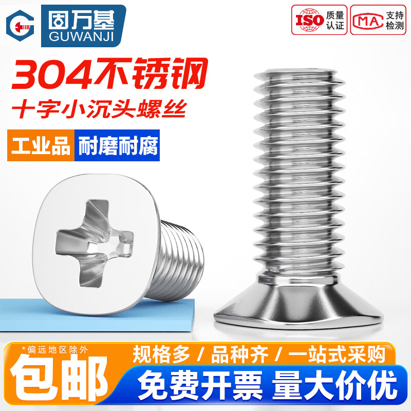 固万基304不锈钢十字小沉头螺丝平头机丝螺栓GB819小头径螺钉大全M2-M6 M4x6 头6.5[200粒]