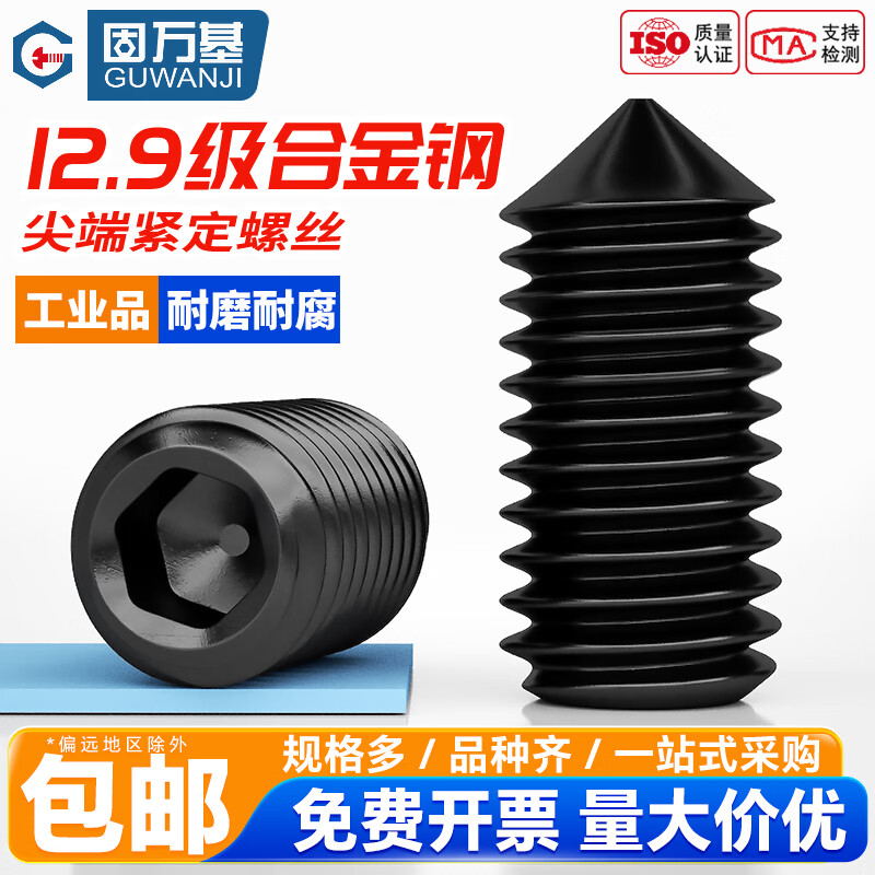 GUWANJI12.9级尖端紧定螺丝止付内六角无头机米尖端顶丝螺钉M1.6M2-M16 M1.6x3[50粒]