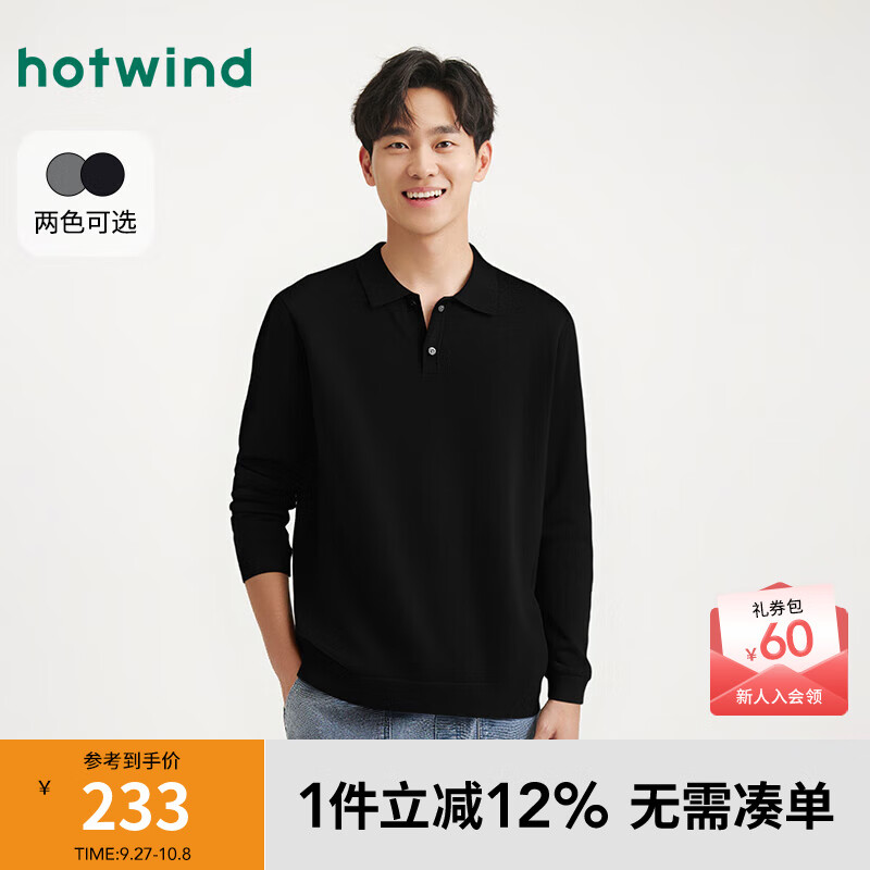 热风男士针织衫polo领商务打底衫2025年冬季新款内搭打底针织衫 01黑色 S