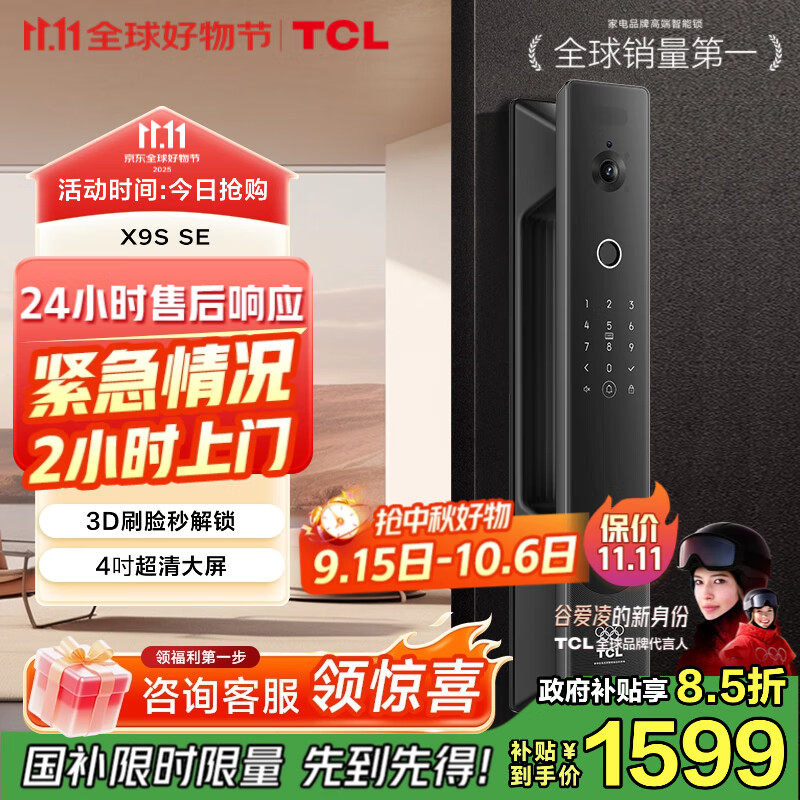 TCL3D人脸大屏猫眼监控智能锁指纹锁智能门锁密码锁家用电子锁X9S SE 【奥运版】