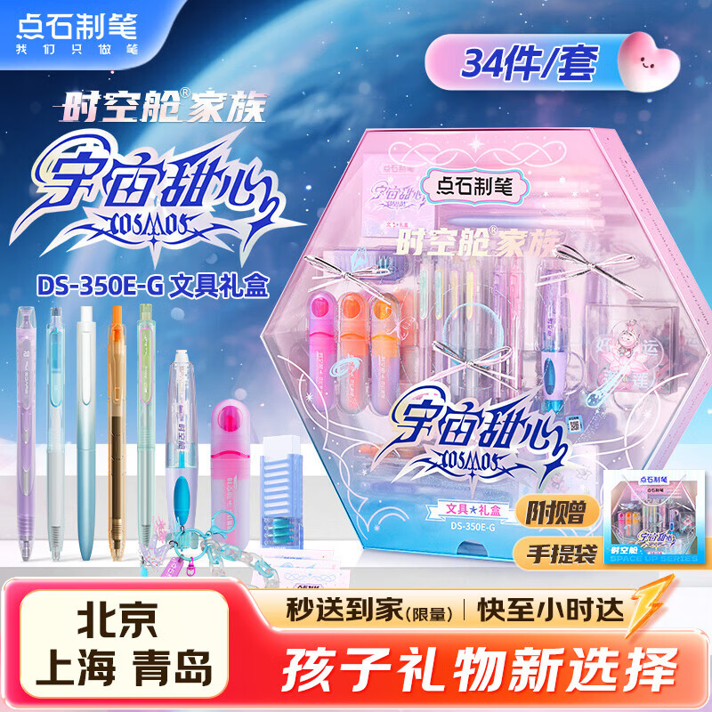 点石制笔时空舱文具礼盒高颜值女孩文具套装生日礼物初高中生学习升学中秋节礼物34件套350E-G宇宙甜心