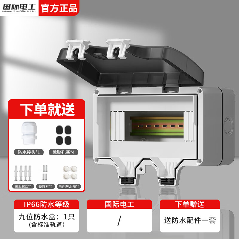 国际电工漏保插座配电箱防水盒断路器户外充电桩防雨漏电保护强电箱空开盒 双联-IP66防水空盒