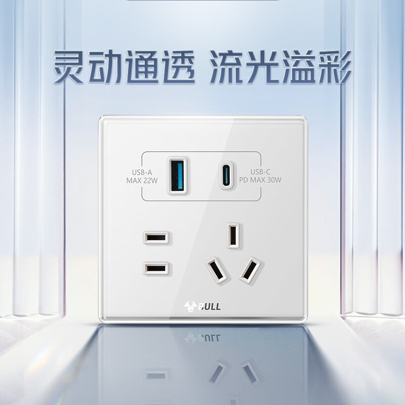 公牛(BULL)【万家】面板86型亚克力usb五孔带开关网络电视空调插座 G62白 【(C口30W快充)五孔2USB】