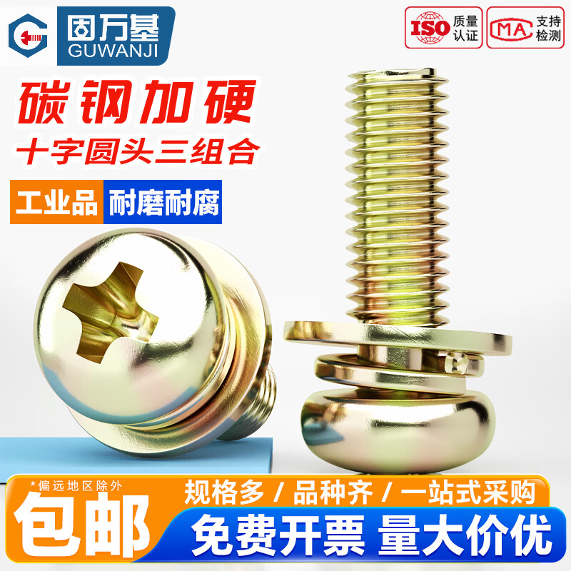 固万基铁镀锌彩锌十字圆头三组合螺丝钉盘头平弹垫片组合螺栓螺钉帽根母 M3x5x6[500套]