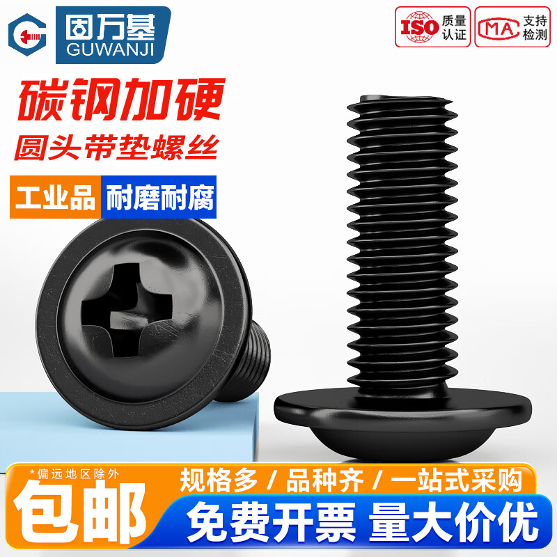 固万基铁发黑十字圆头带垫螺丝钉PWM发黑螺栓机丝盘头带介子螺钉M1.4-M6 M1.4x3x4[1000只]