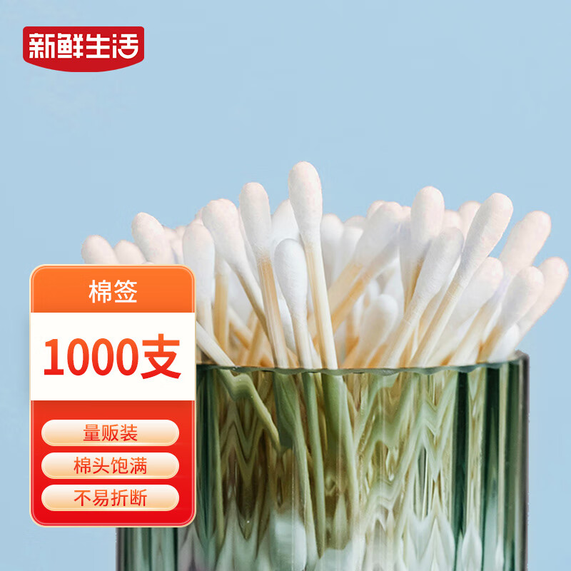 新鲜生活双头棉签1000支化妆用棉签棉棒家用一次性球清洁卫生棉