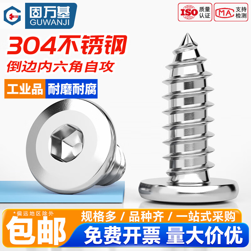 GUWANJI304不锈钢倒边内六角自攻螺钉家具螺丝大平头木螺钉M2-M10 M2x4[500只]