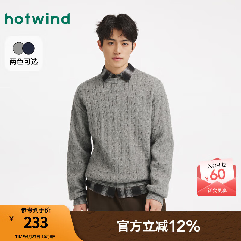 热风(Hotwind)【商场同款】男士针织衫毛衣2025年冬季新款老钱风绞花打底毛衣 09灰色 S