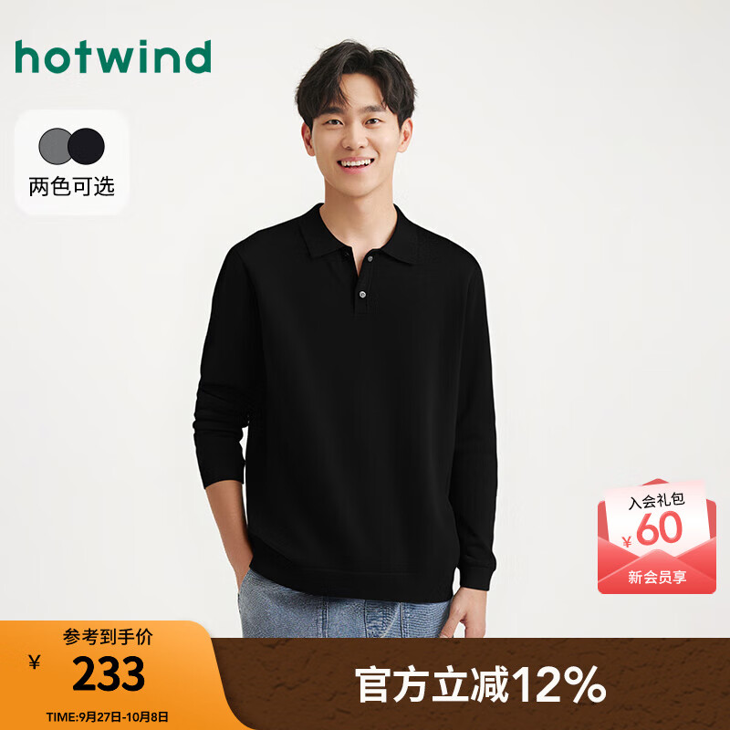 热风(Hotwind)【商场同款】男士针织衫polo领商务休闲2025年冬季新款内搭打底衫 01黑色 S