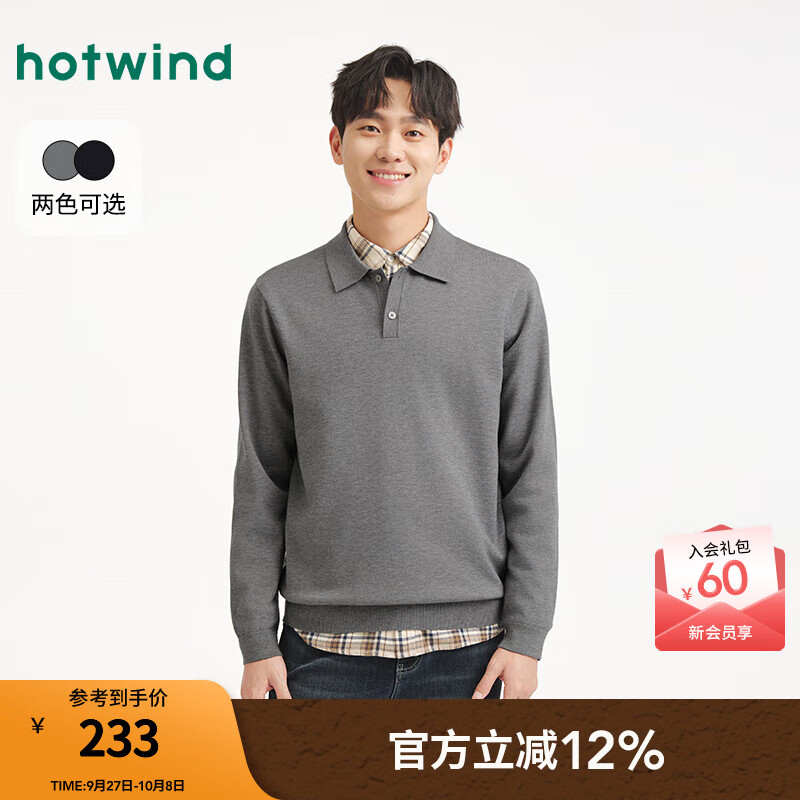 热风(Hotwind)【商场同款】男士针织衫polo领商务休闲2025年冬季新款内搭打底衫 09灰色 S