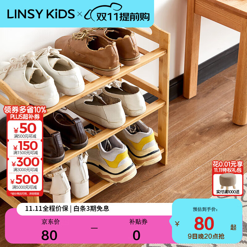 LINSY KIDS鞋架子多层简易家用经济型门口鞋柜收纳置物架宿舍LS232N2 【原木色】LS232N2-A三层鞋架