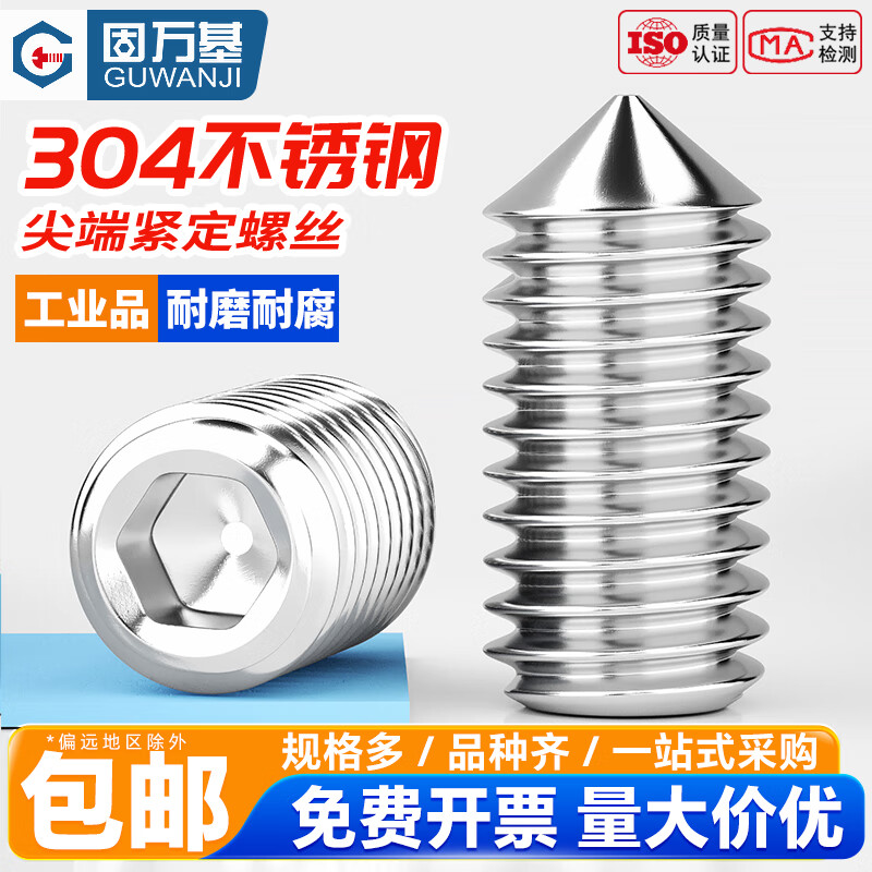 GUWANJI304不锈钢内六角尖端紧定螺钉DIN914无头机米螺丝顶丝M2M3M4-M16 M2x3[100个]