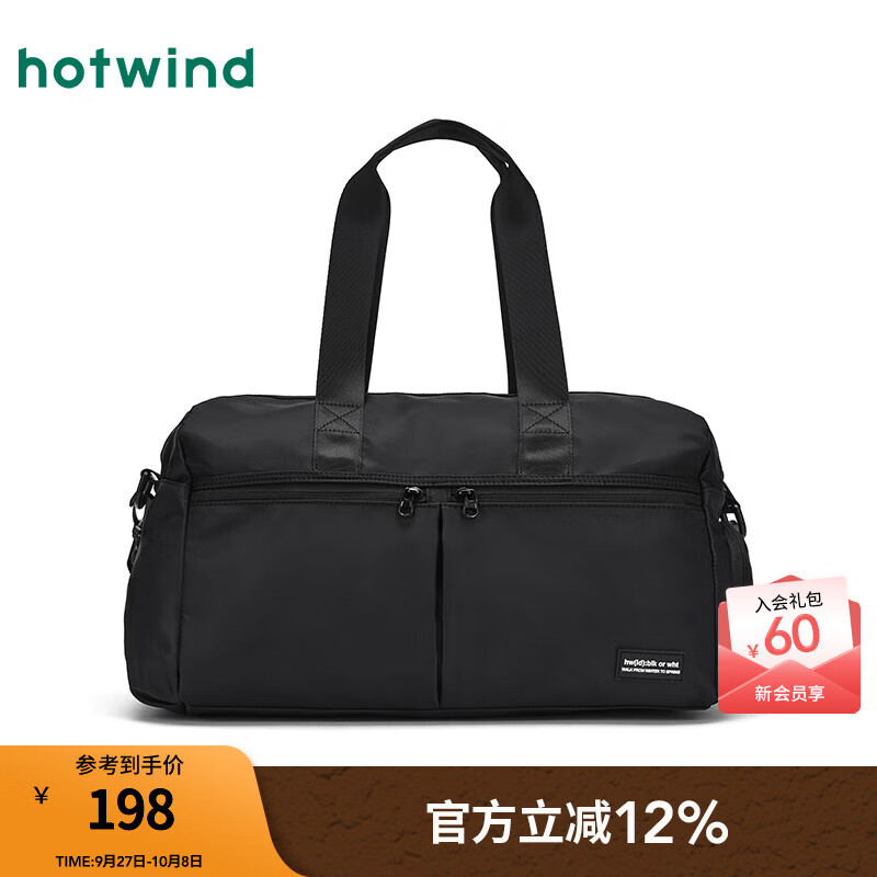 热风(Hotwind)【商场同款】男士健身出行两用包2025年冬季新款男士大容量单肩包 01黑色 中