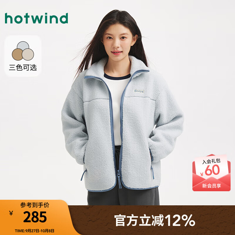 热风(Hotwind)【商场同款】女士夹克仿羊羔毛外套2025年冬季新款立领拉链上衣 06兰色 S