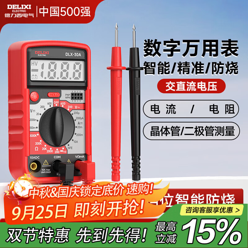 德力西电气万用表高精度数显全档位智能防烧交直流万用表电工专用手持万能表 手持数显万用表 【高精度测量/高清显示屏】