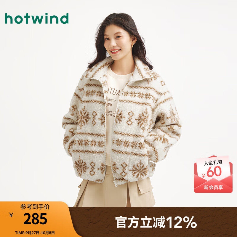 热风(Hotwind)【商场同款】女士夹克外套仿羊羔毛2025年冬季新款提花毛绒外套 03米色 S