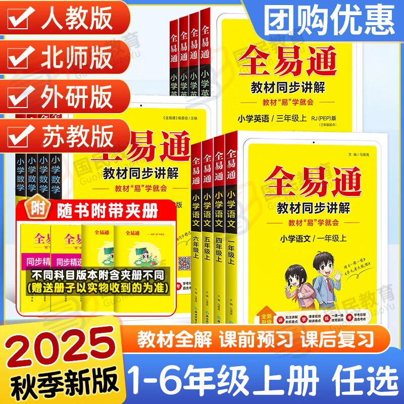 2025秋全易通一二三四五六年级上册语文数学英语教材全解小学课本123456年级上教材同步讲解精讲精练易学就会完全解读课前预习课堂笔记星火 六年级上册 【人教版】语文