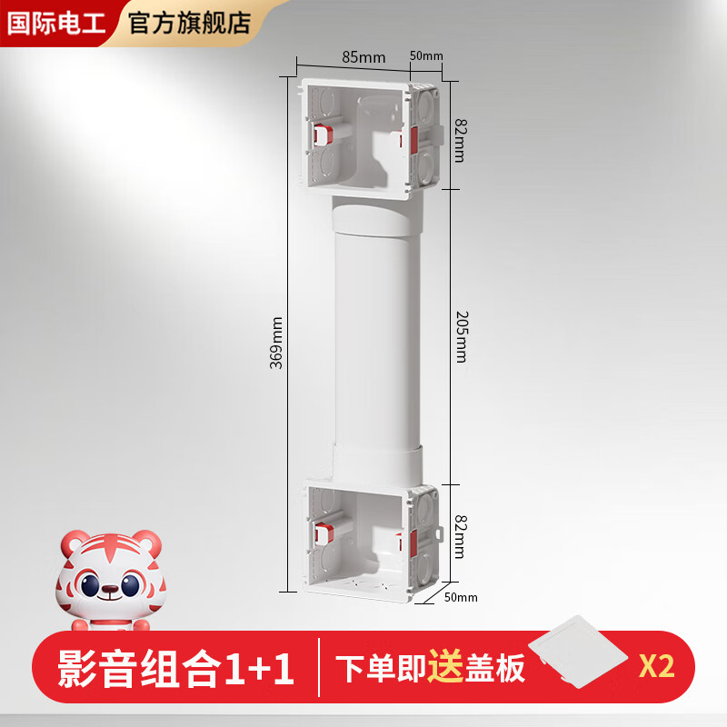FDD国际电工86型五联电视暗装接线盒影音自由拼接扁管埋线盒双色组装拼接底盒 电视接线盒白色20.5cm1+1
