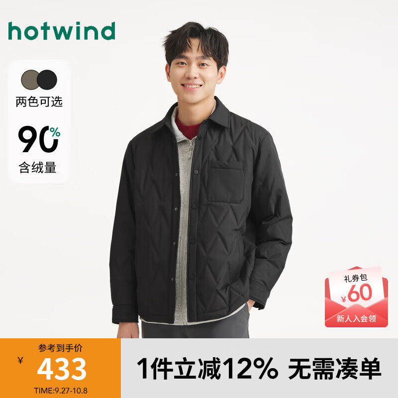热风(Hotwind)男士轻薄羽绒服夹克外套上衣2025年冬季新款衬衫羽绒服内搭 01黑色 S