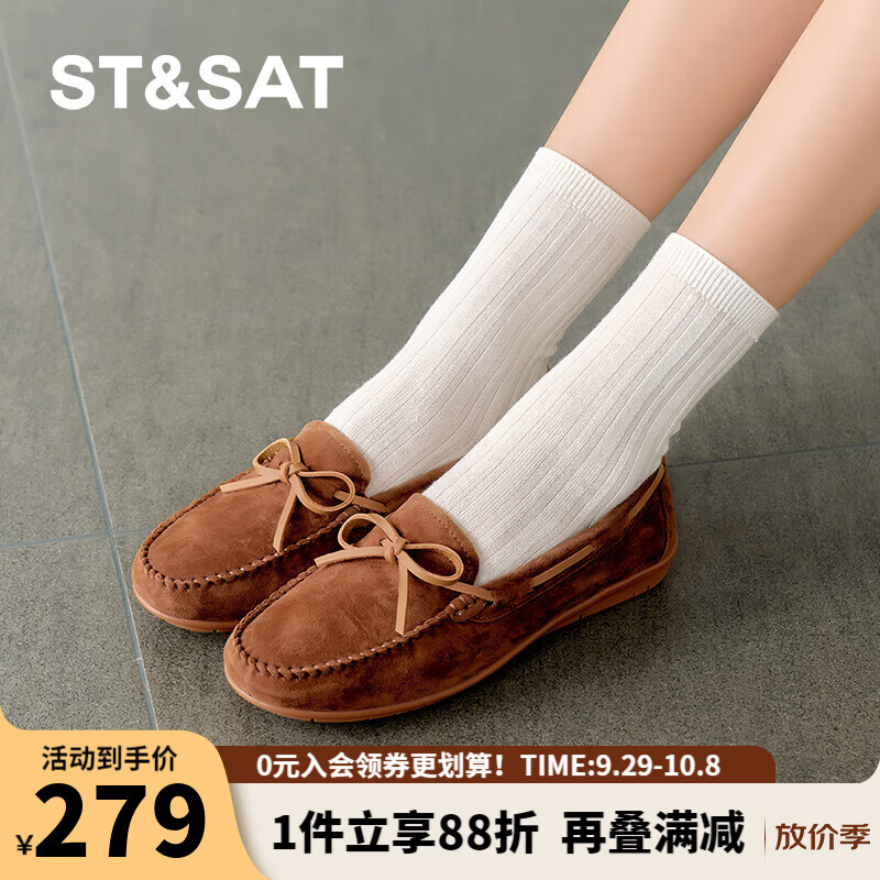 St&Sat星期六蝴蝶结一脚蹬夏2025新款休闲通勤优雅百搭单鞋女SSD2111496 咖啡色 35
