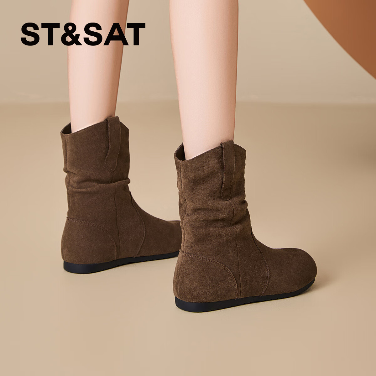 星期六短筒靴女2025年新款爆款秋冬复古时尚瘦瘦靴舒适百搭马丁靴堆堆靴 驼色 37