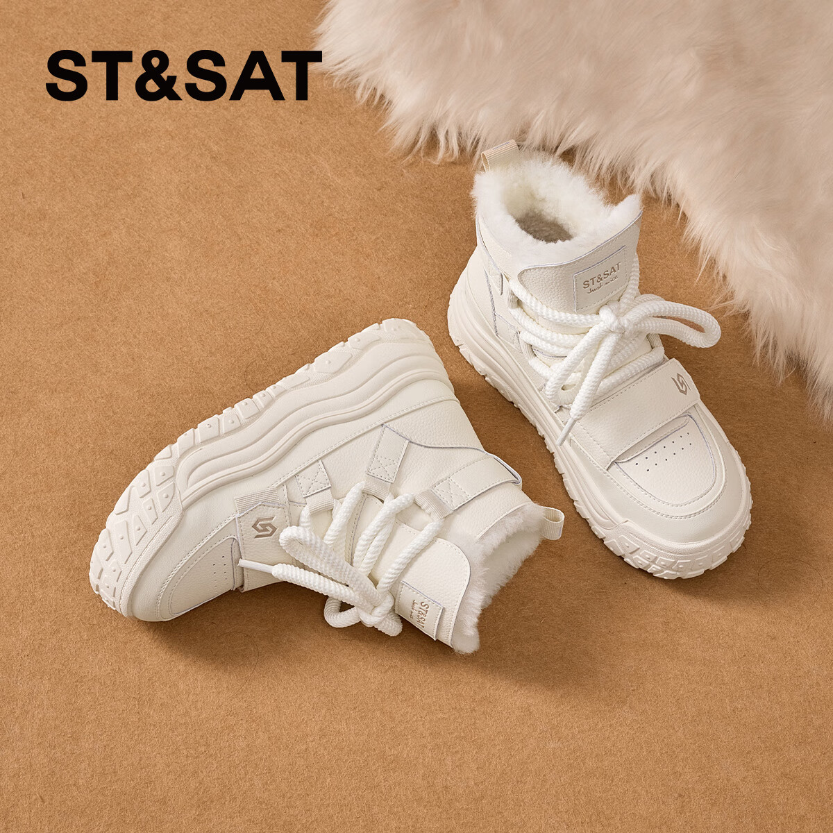 星期六厚底雪地靴女2025新款冬季皮毛一体小白鞋子加厚保暖马丁靴 白色 35