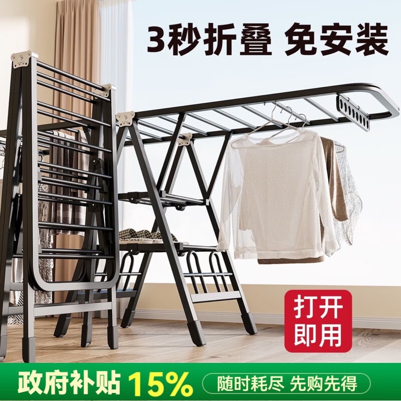 吱凡日本折叠晾衣架落地阳台家用室内晒衣服被子神器式可晾晒衣架杆子 【星耀黑】1.8米-3层+鞋托