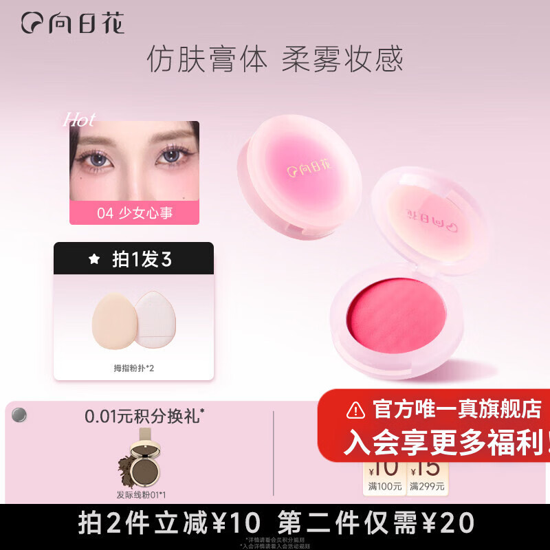 向日花腮红膏泥膨胀收缩色哑光裸色腮红显白单色多用膏黄皮显白 D02漫野蔷薇