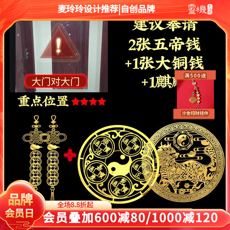 灵机生活馆麦玲玲代言2026马年门对门五帝钱贴化解大阳台卧室楼梯阳台挂件 大门对大门