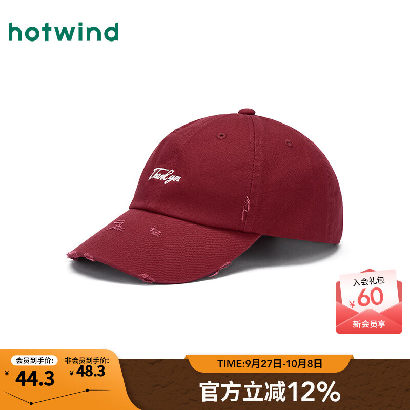 热风(Hotwind)棒球帽情侣款鸭舌帽2025年秋季新款破洞做旧字母棒球帽鸭舌帽 05红色 均码