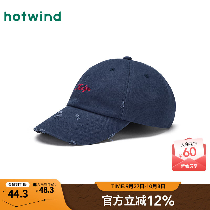 热风(Hotwind)棒球帽情侣款鸭舌帽2025年秋季新款破洞做旧字母棒球帽鸭舌帽 29藏青兰 均码