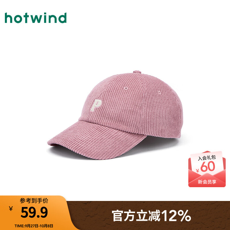 热风【商场同款】棒球帽2025年秋新款灯芯绒字母美式复古情侣款鸭舌帽 14粉红 均码